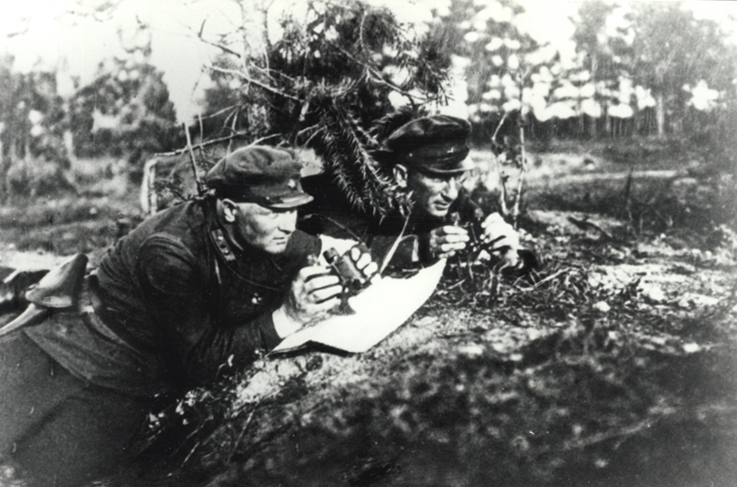 На учении К.А. Мерецков начальник штаба Московского военного округа и Б.М. Симонов справа 1931г.