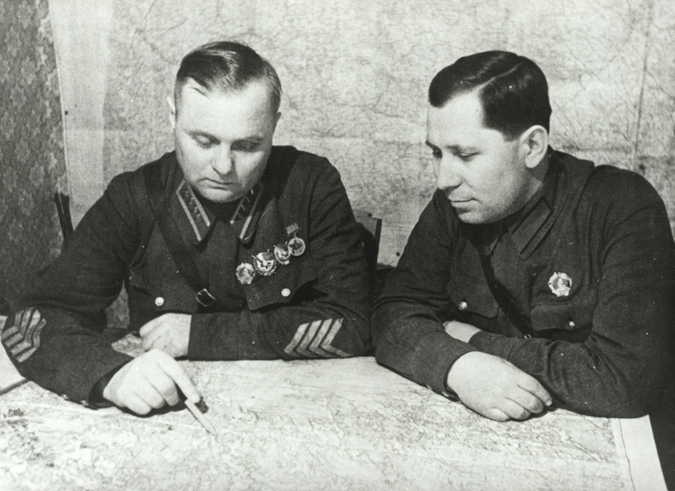 К.А. Мерецков командующий войсками 7 армии уточняет план прорыва долговременной оборонительной системы на Карельском перешейке - линии Манергейма. Справа член военного совета армии Т.Ф. Штыков январь 1940 г.