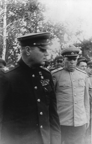 Главнокомандующий войсками на Дальнем востоке маршал Советского Союза А.М. Василевский (справа) и командующий войсками 1-ого Дальневосточного фронта