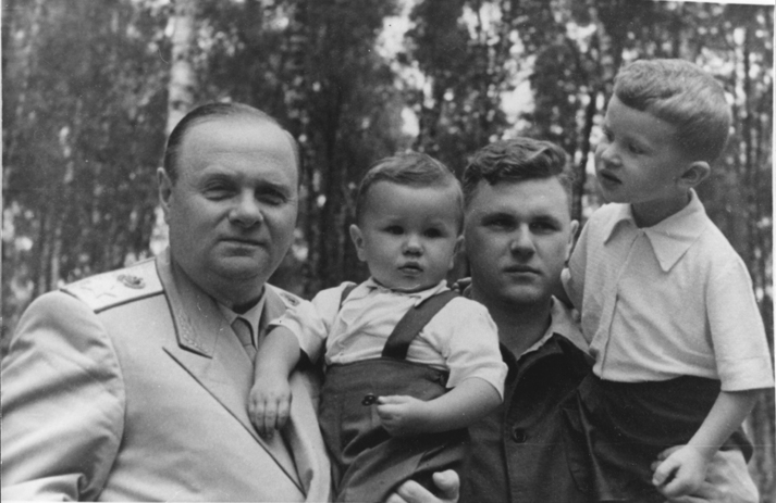 Помощник министра обороны по ВУЗам Маршал Советского Союза К.А. Мерецков с сыном В.К. Мерецковым (полковник и начальник штаба 37 гвардейской механизированной дивизии) и внуками Кириллом и Владимиром. 1956 г.