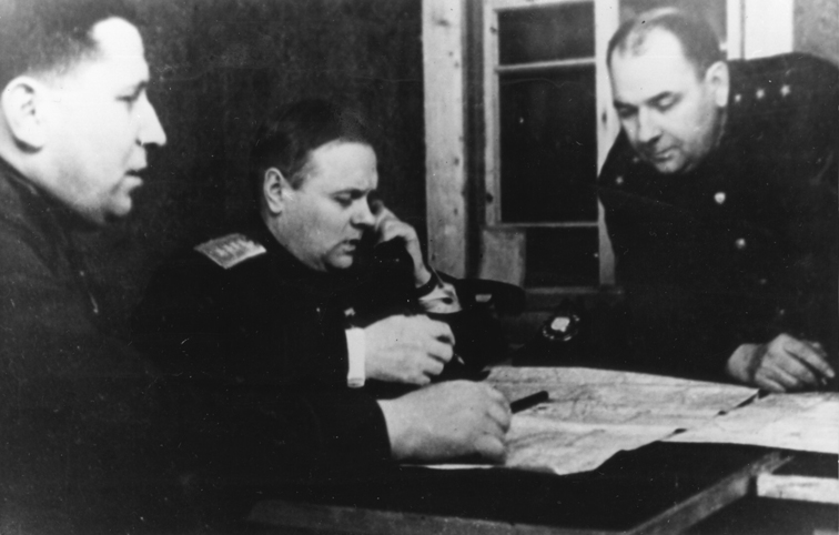 Командующий войсками Волховского фронта на вспомогательном пункте управления во время проведения Новгородско-Лужской операции по разгрому немецко-фашистских войск под Новгородом и Ленинградом.1944г.
